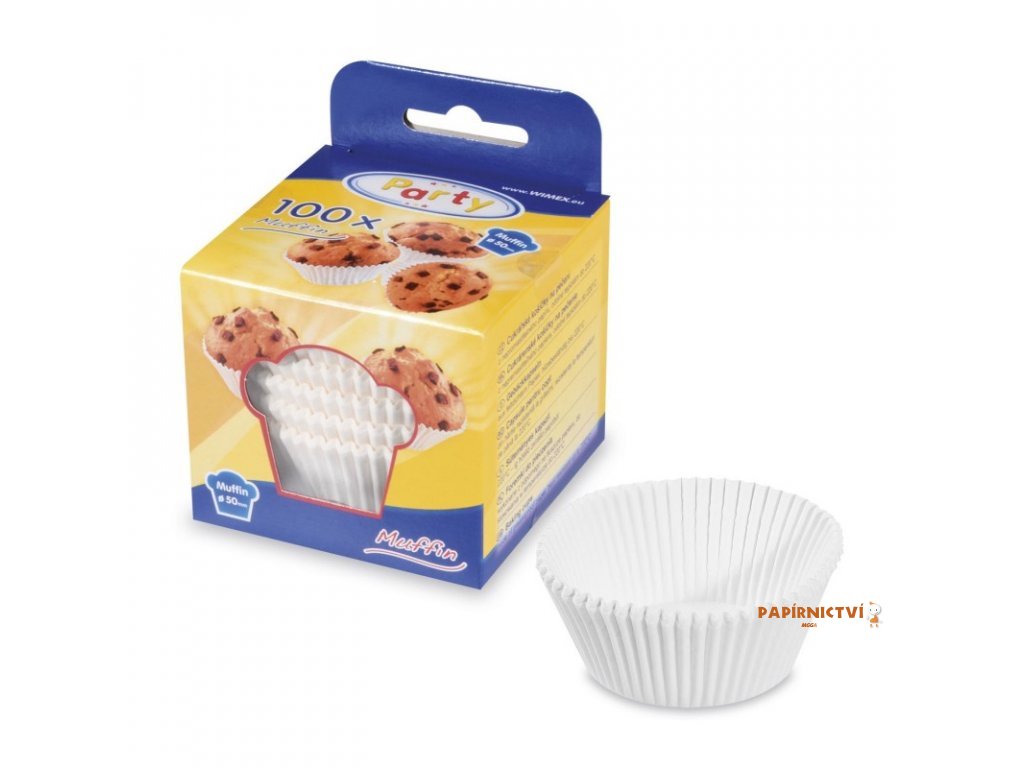 Klasický bílý papírový košíček určený nejen na balení hotových cukrářských výrobků, ale i na pečení ve formách na muffiny.