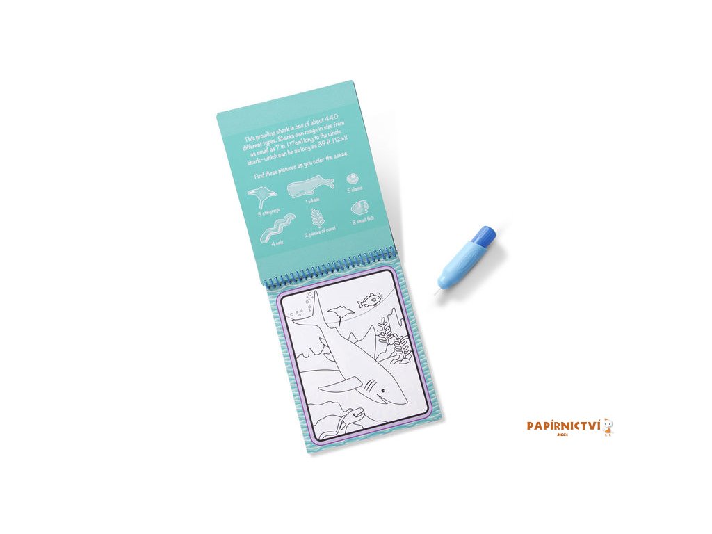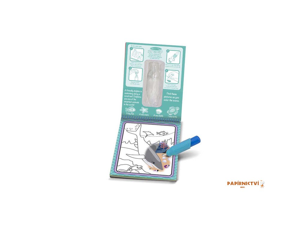 Omalovánky obsahují čtyři obrázky. Vodní pero se snadno drží a vkládá se do úložné schránky na přední straně omalovánky, což činí