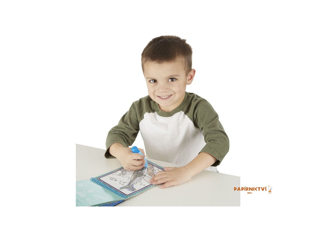 Balení obsahuje 4 znovupoužitelné obrázkové plochy z tvrdého kartonu a speciální pero, které se znovu doplňuje vodou.