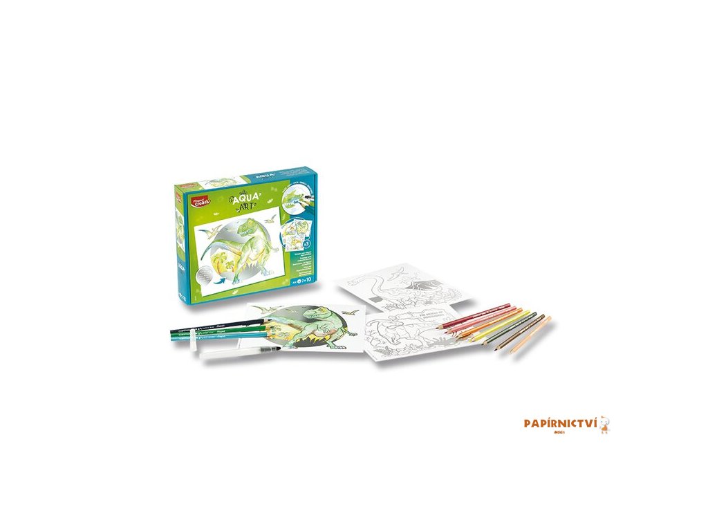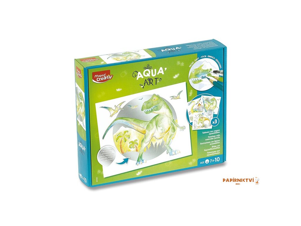 Kreativní sada Maped Creative Aqua´Art Dinosaurus je ideální pro tvorbu obrázků s „efektem akvarelu“. Metalizované obrázky k vybarvení a následné úpravě štětcem pro jedinečný „akvarelový efekt“. Metalické obrysy zabrání nechtěnému přetažení barvou.