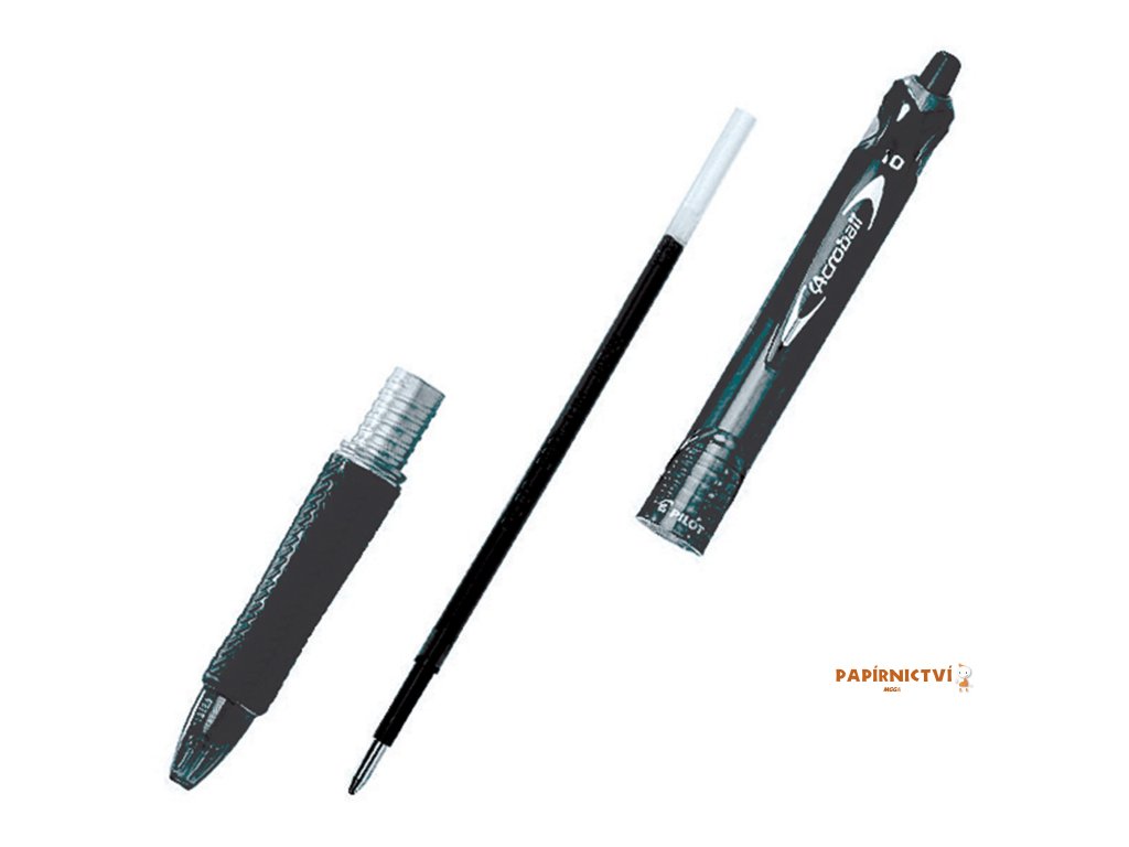 Stíhá vaše tempo! Stačí jen stisknout a psát! Acroball je skvělým pomocníkem jak na rychlé poznámky či podpisy, ale i na psaní dlouhých textů např. na přednášce. Díky pohodlnému ergonomickému úchopu, stiskacímu mechanismu a hladkému, plynulému toku inkoustu se stane vaším pomocníkem ve škole, v kanceláři i doma. Dobrá zpráva pro všechny eko nadšence: Kuličkové pero Pilot Acroball je vyrobeno z recyklovaných materiálů.