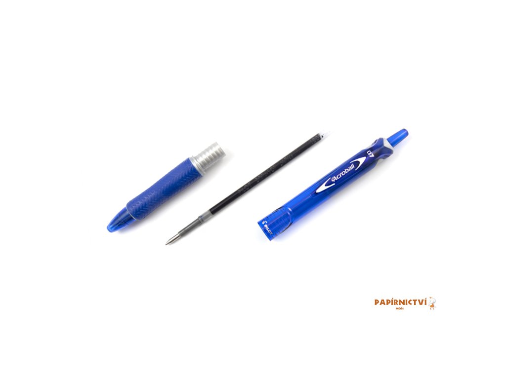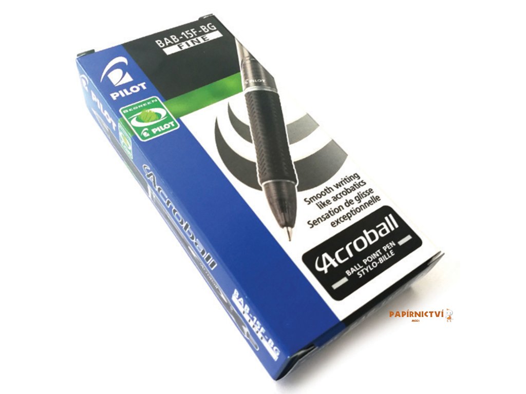 Stíhá vaše tempo! Stačí jen stisknout a psát! Acroball je skvělým pomocníkem jak na rychlé poznámky či podpisy, ale i na psaní dlouhých textů např. na přednášce. Díky pohodlnému ergonomickému úchopu, stiskacímu mechanismu a hladkému, plynulému toku inkoustu se stane vaším pomocníkem ve škole, v kanceláři i doma. Dobrá zpráva pro všechny eko nadšence: Kuličkové pero Pilot Acroball je vyrobeno z recyklovaných materiálů.