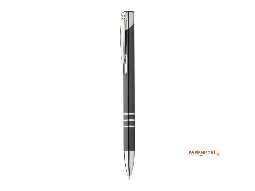 Hliníkové kuličkové pero s modrou náplní.