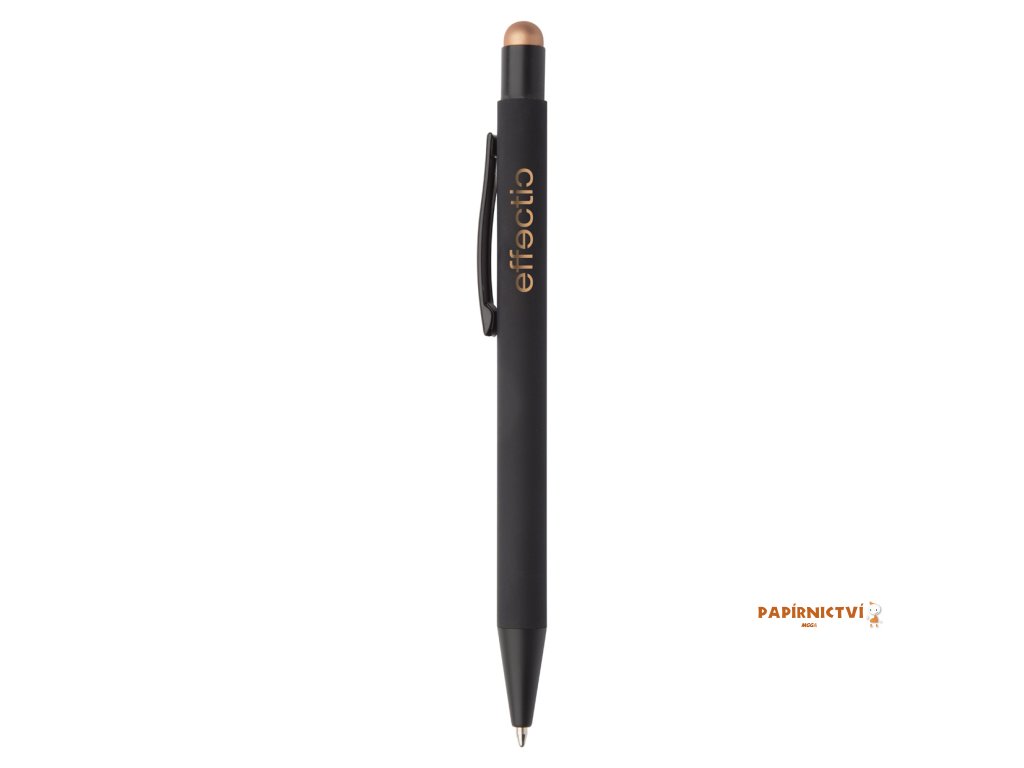 Hliníkové kuličkové a dotykové pero s pogumovanou úpravou a speciálním povrchem pro zrcadlový laser v barvě stylusu, s modrou náplní.