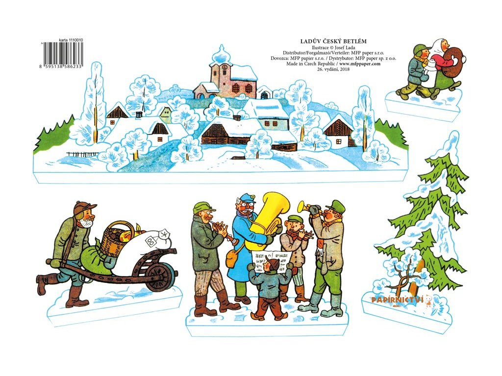 Betlém - Ladův český papírový betlém - Vystřihněte si a sestavte Ladův tradiční český betlém. K sestavení potřebujete jen nůžky a lepidlo na papír. Tuto jednoduchou vystřihovánku zvládnou i děti.
