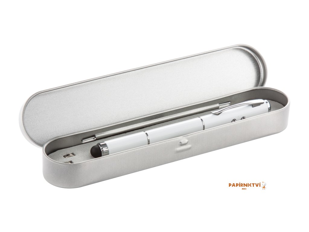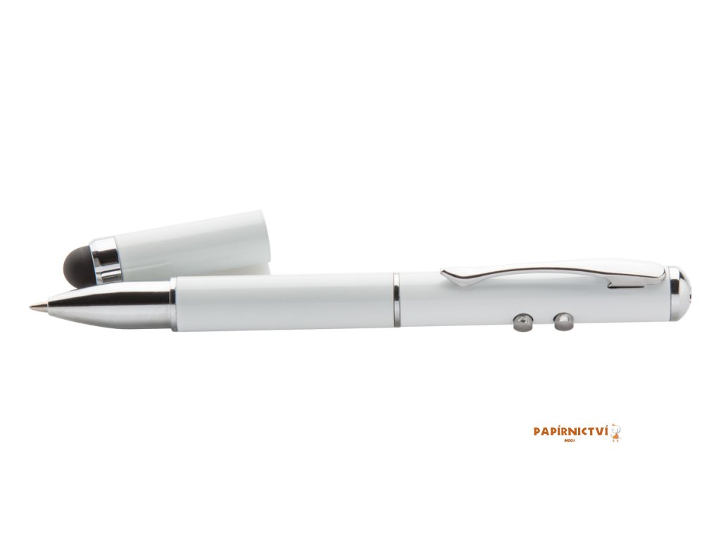 Multifunkční laserové ukazovátko s perem pro dotykové displeje a LED světlem.