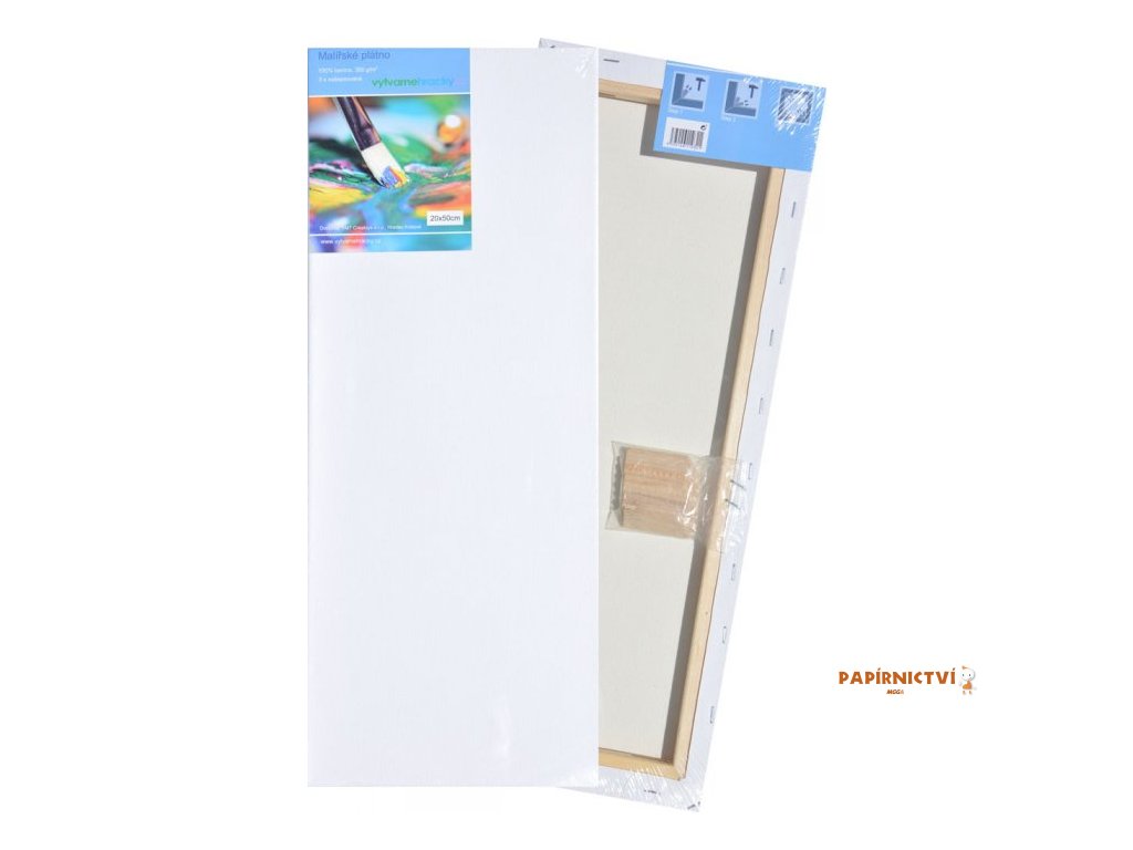 Vysoce kvalitní malířské plátno o rozměru 20x50 cm s gramáží 380 g/m2, 100% bavlna - 3x našepsováno. Plátno je natažené na rám z borovicového dřeva. Připraveno k okamžitému malování, jak akrylovými, tak olejovými barvami. Součástí balení je 8 dřevěných vypínací kolíků.