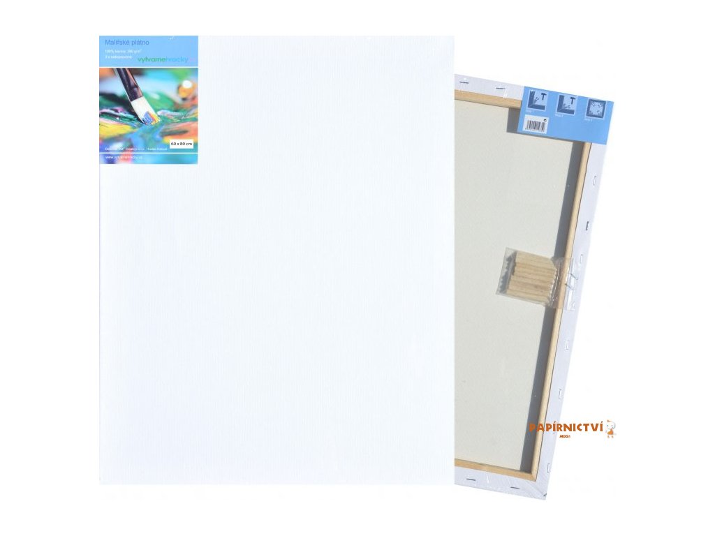 Vysoce kvalitní malířské plátno o rozměru 60x80 cm s gramáží 380 g/m2, 100% bavlna. Plátno je natažené na rám z borovicového dřeva. Připraveno k okamžitému malování, jak akrylovými, tak olejovými barvami. Součástí balení je 8 dřevěných vypínací kolíků