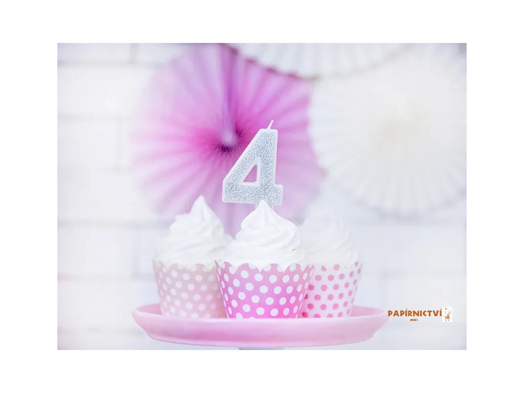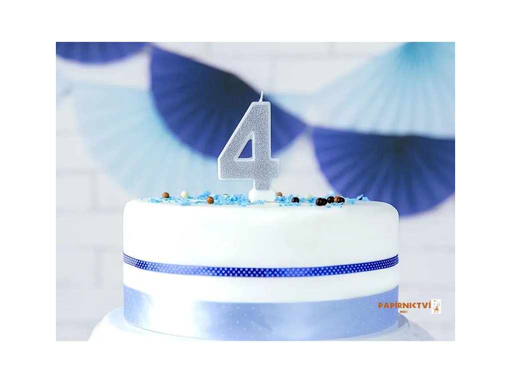 Narozeninová svíčka číslo 4, stříbrná, 7cm