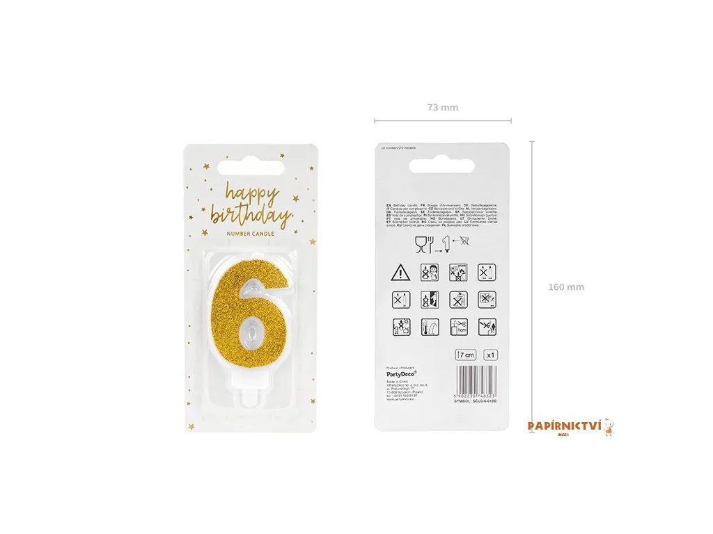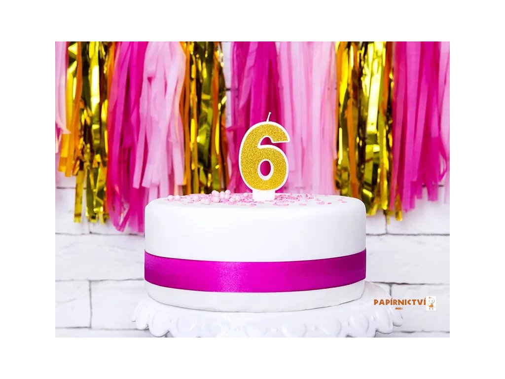 Narozeninová svíčka číslo 6, zlatá, 7cm