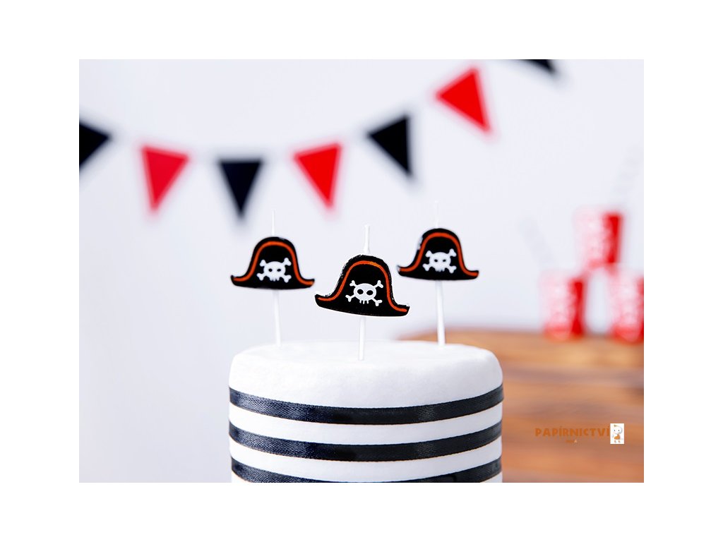 Narozeninové svíčky Piráti, 2 cm Narozeninové svíčky Piráti ve tvaru klobouku, výška cca 2 cm.
