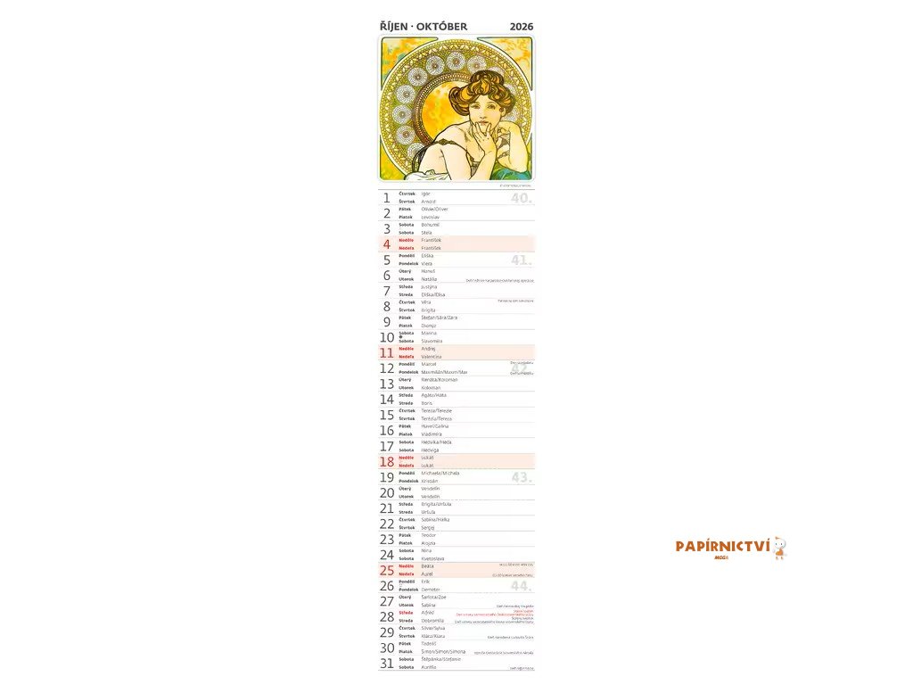 Kalendář Alfons Mucha - vázanka