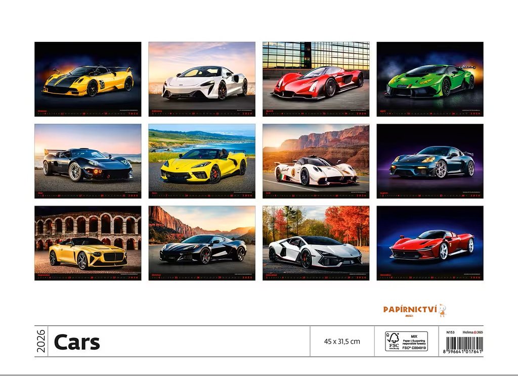 Nástěnný kalendář Cars 2026 450x315(70)mm N153-26