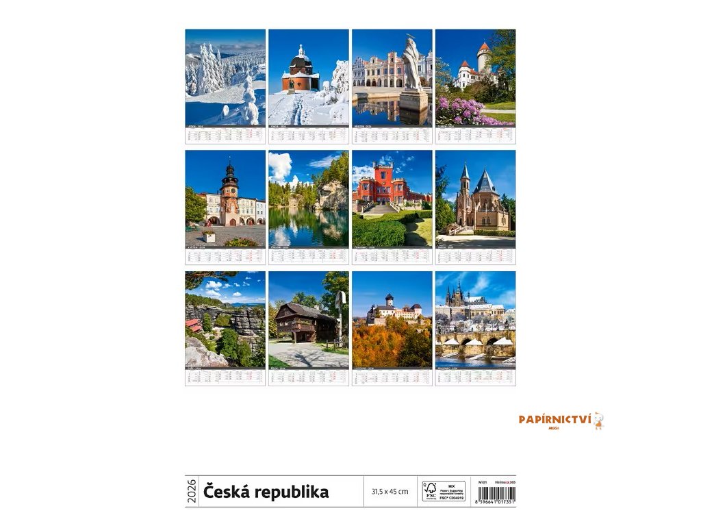 Kalendář Nejkrásnější místa České republiky Formát kalendáře: 31,5 x 45 cm