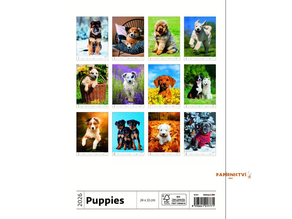 Nástěnný kalendář Puppies/Welpen/Štěňátka/Šteniatka 2026 240x330mm N181-26