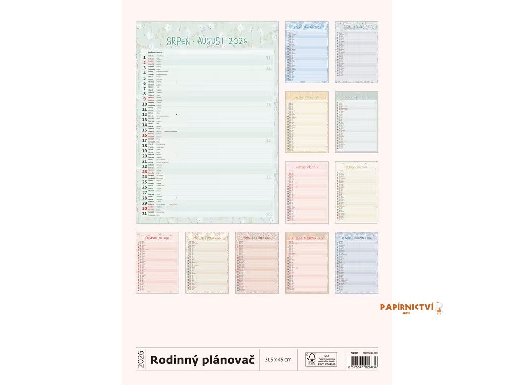 Nástěnný kalendář Rodinný plánovač NEW 2026 315x450mm N200-26