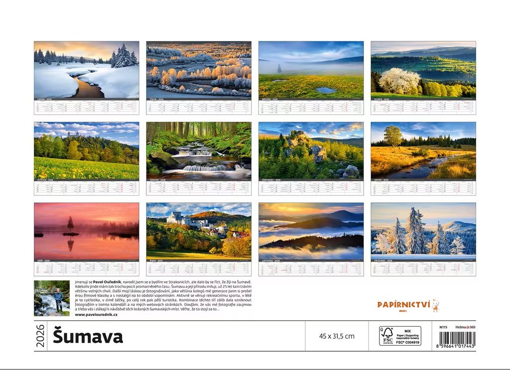 Nástěnný kalendář Šumava 2026 450x315(70)mm N115-26