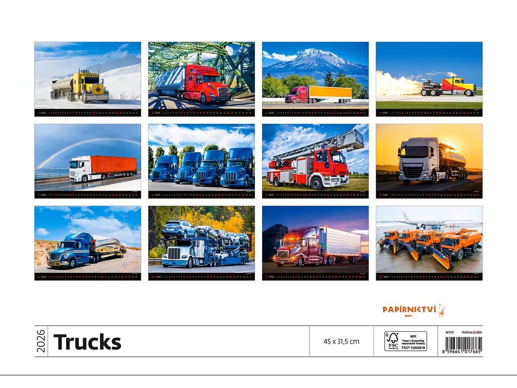 Nástěnný kalendář Trucks 2026 450x315(70)mm N155-26
