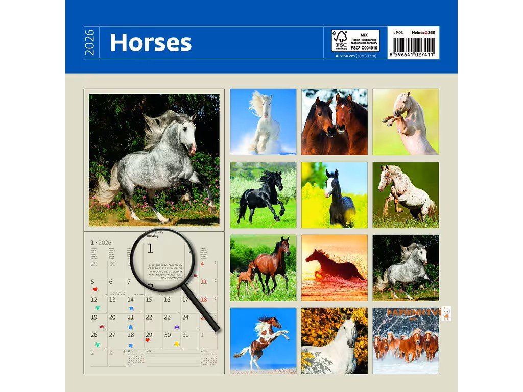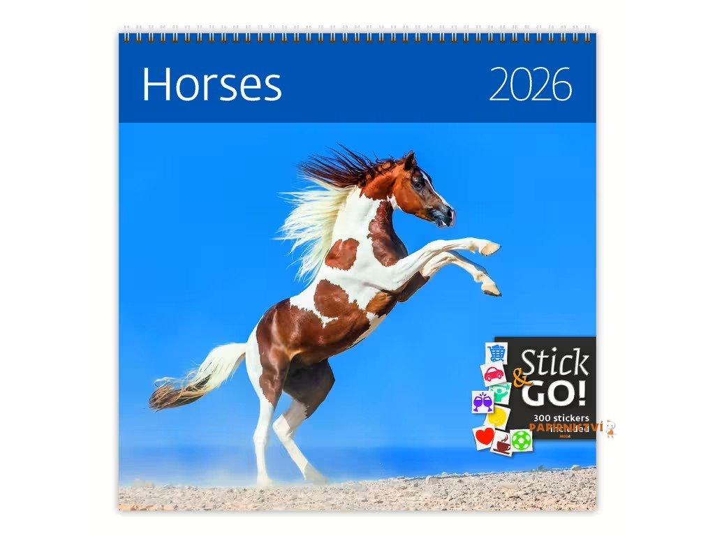 Nástěnný plánovací kalendář Horses 2026 300x300mm LP03-26