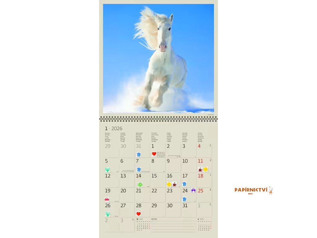 Stolní kalendář na rok 2026 mini s názvem Koně. Kalendář je určený pro milovnice a milovníky koní. Vhodný pro zapisování důležitých poznámek, k organizování různých událostí...