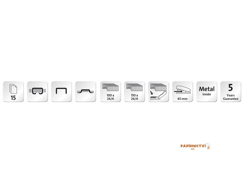 - balení: 1 ks vč. 200 sponek 24/6 DIN SUPER