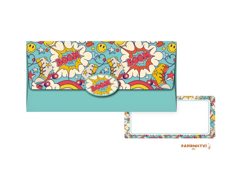 Obálka na peníze s veselým komiksovým motivem v pestrých barvách je ideální volbou pro darování finančního obnosu na oslavy narozenin, dětské párty nebo jiné veselé události.