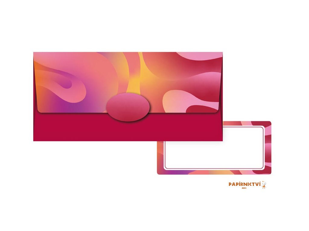 Obálka na peníze s moderním abstraktním motivem v živých odstínech červené a oranžové.