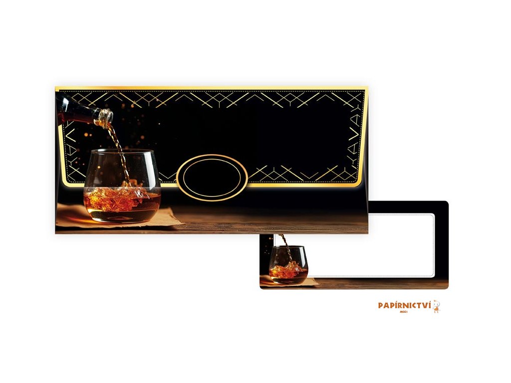 Chcete darovat peníze originálně a stylově? Tato obálka na peníze je ideální volbou pro muže k narozeninám, výročí, promoci nebo jako firemní dárek. Její luxusní design se sklenkou whisky a zlatými ornamenty působí moderně a slavnostně.
