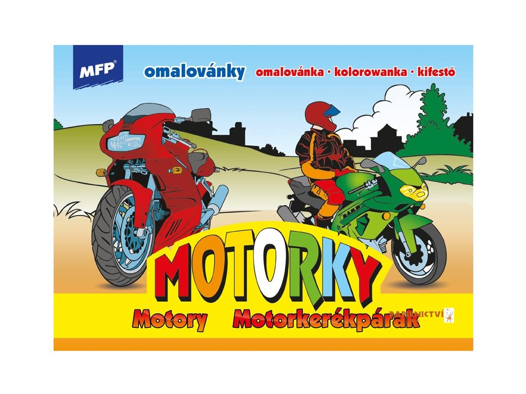 Dětské omalovánky MFP - Motorky - Udělejte si pohodové odpoledne s dětmi a vybarvěte si obrázek. Tyto omalovánky jsou jednoduché s velkými obrázky, tudíž vhodné i pro ty nejmenší děti. Vybarvování obrázků pomůže rozvíjet řadu schopností a dovedností, zejména má velký vliv na jemnou motoriku ruky. Zakoupit si u náš můžete i kvalitní barevné pastelky.