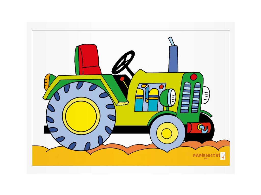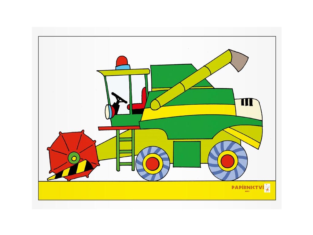 Počet předloh k vymalování: 8 (bagr, nakladač, traktor, kombajn, míchačka, jeřáb, sklápečka)