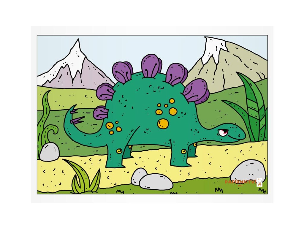 Počet předloh k vymalování: 8 (stegosaurus, tyranosaurus Rex, brontosaurus, pterodaktyl, aj.)