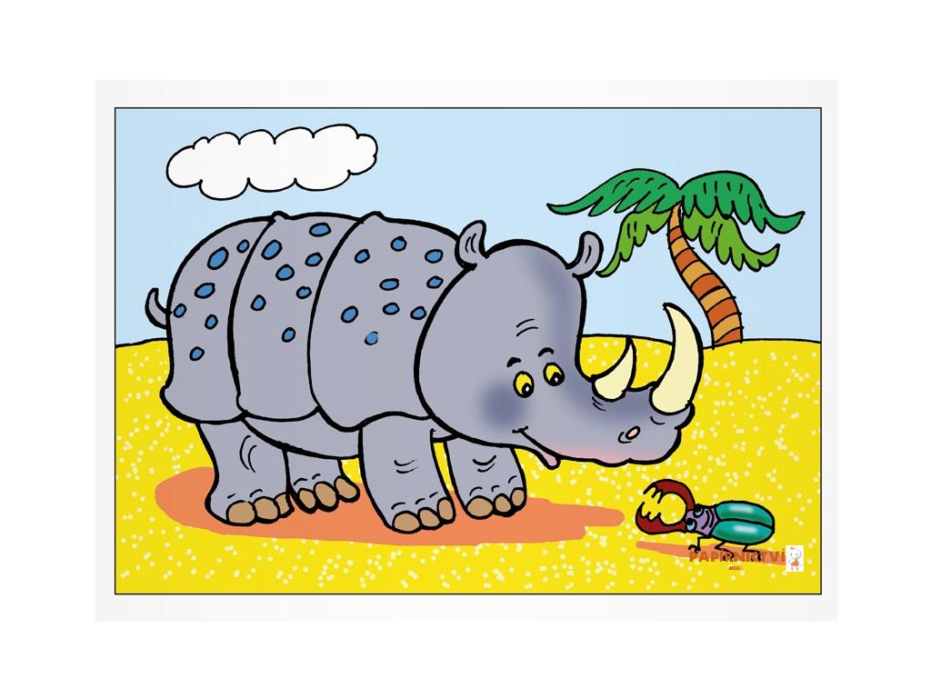 Počet předloh k vymalování: 8 (kohout, nosorožec, zajíc, liška, hroch, kůň, papoušek, slon)