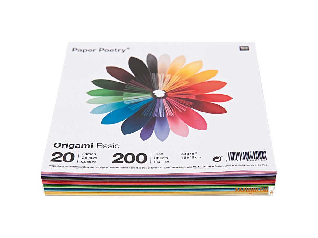 Origami basic, 15x15cm, mix200ks, 20 barev