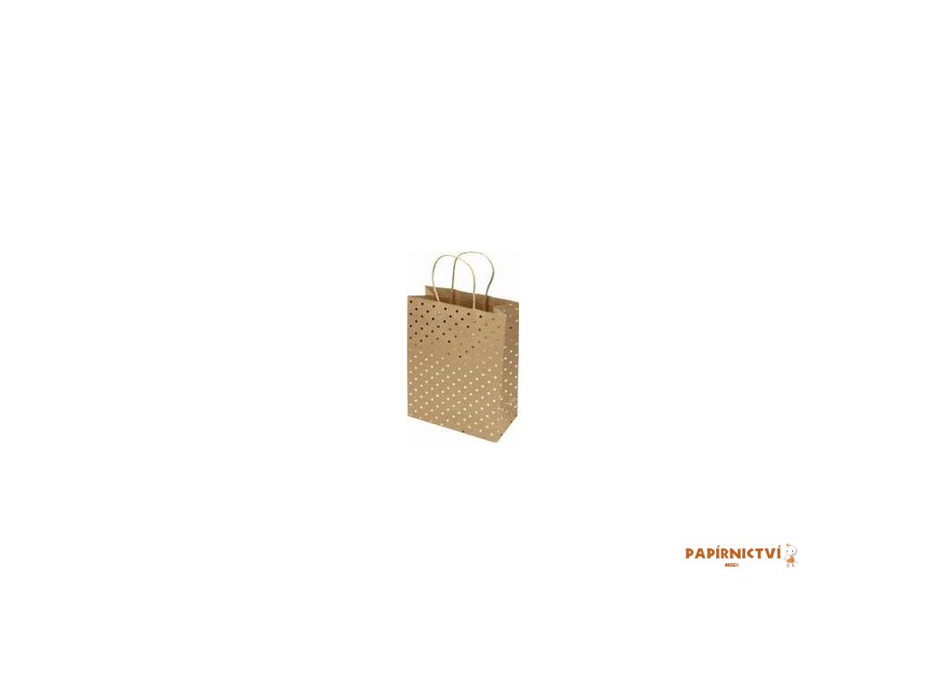Papírová taška přírodní 20x25x10cm hnědá se zlatými tečkami