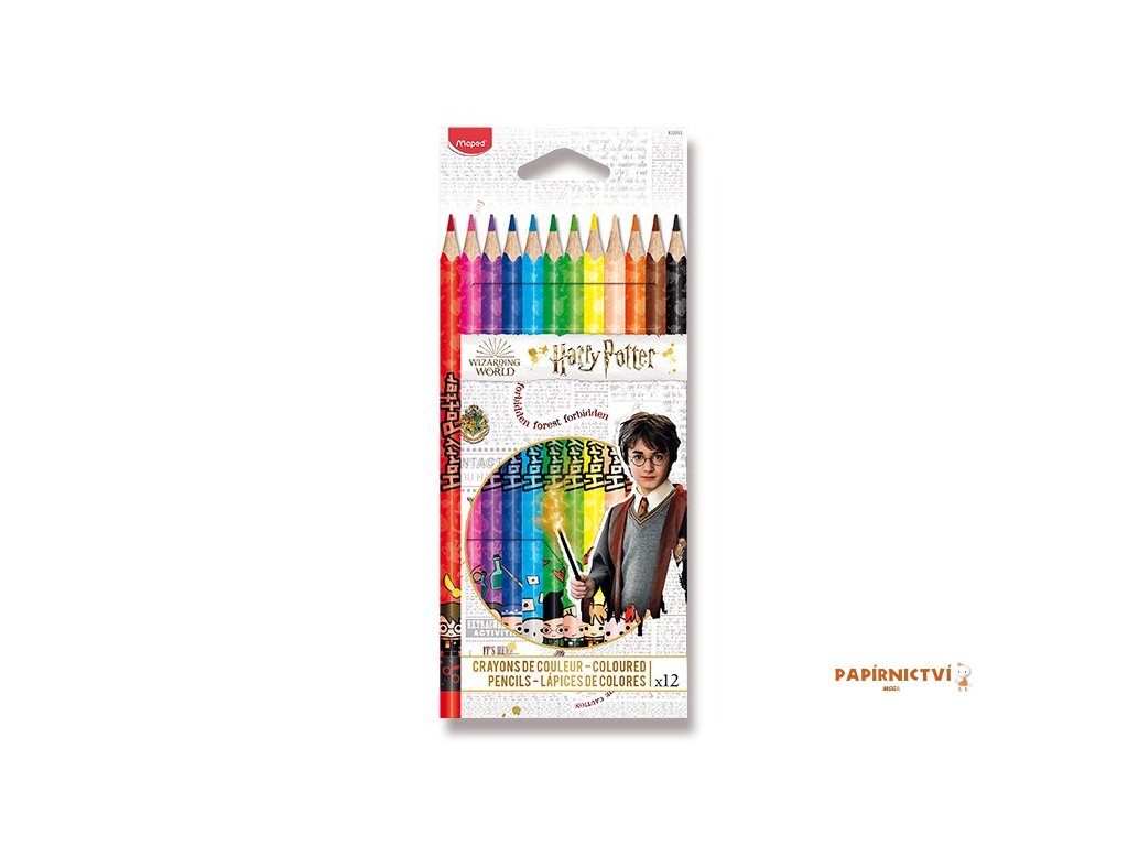 Souprava 12 kusů pastelek s atraktivními motivy Harryho Pottera. Ergonomické pastelky Maped Color'Peps mají trojhranné tělo, měkkou odolnou tuhu a jasné barvy.
