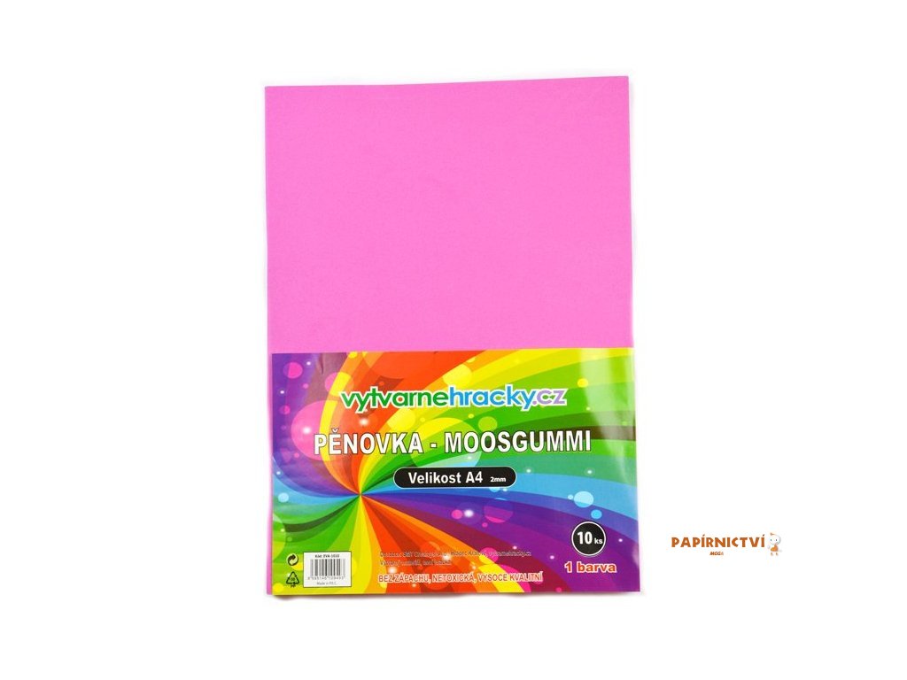 Balení obsahuje: 10 ks růžové pěnovky velikost A4, Tloušťka jednoho listu je 2 mm.