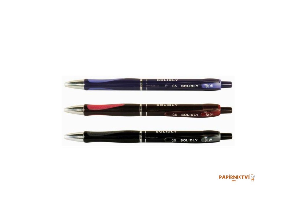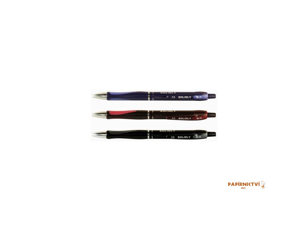 Plastové kuličkové pero, stiskací mechanismus, gumová úchopová část pro pohodlné držení, vyměnitelná náplň vyměnitelná náplň F-411 needle, jehlový hrot pro extra tenké psaní, modrý inkoust, šíře stopy 0,5 mm