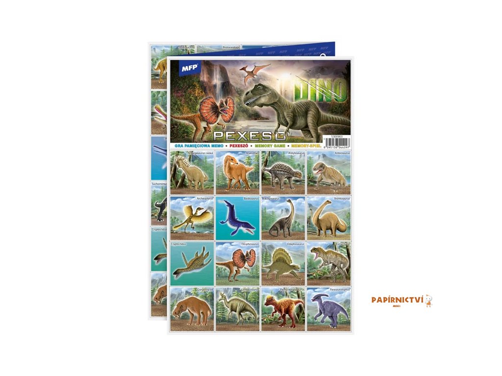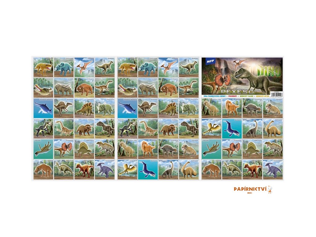 PEXESO je populární dětská stolní hra, která nikdy neomrzí a zapojit se můžou i dospělí. Pexeso - Dino - je vhodné pro chlapce a milovníky pravěku. Věděli jste, že slovo PEXESO vzniklo souslovím slov PEKELNĚ SE SOUSTŘEĎ? Výborná učební pomůcka pro děti a rodiče. Naučte své děti poznávat různé druhy dinosaurů a procvičujte jejich paměť. Tato hra je zabaví na dlouhé hodiny.