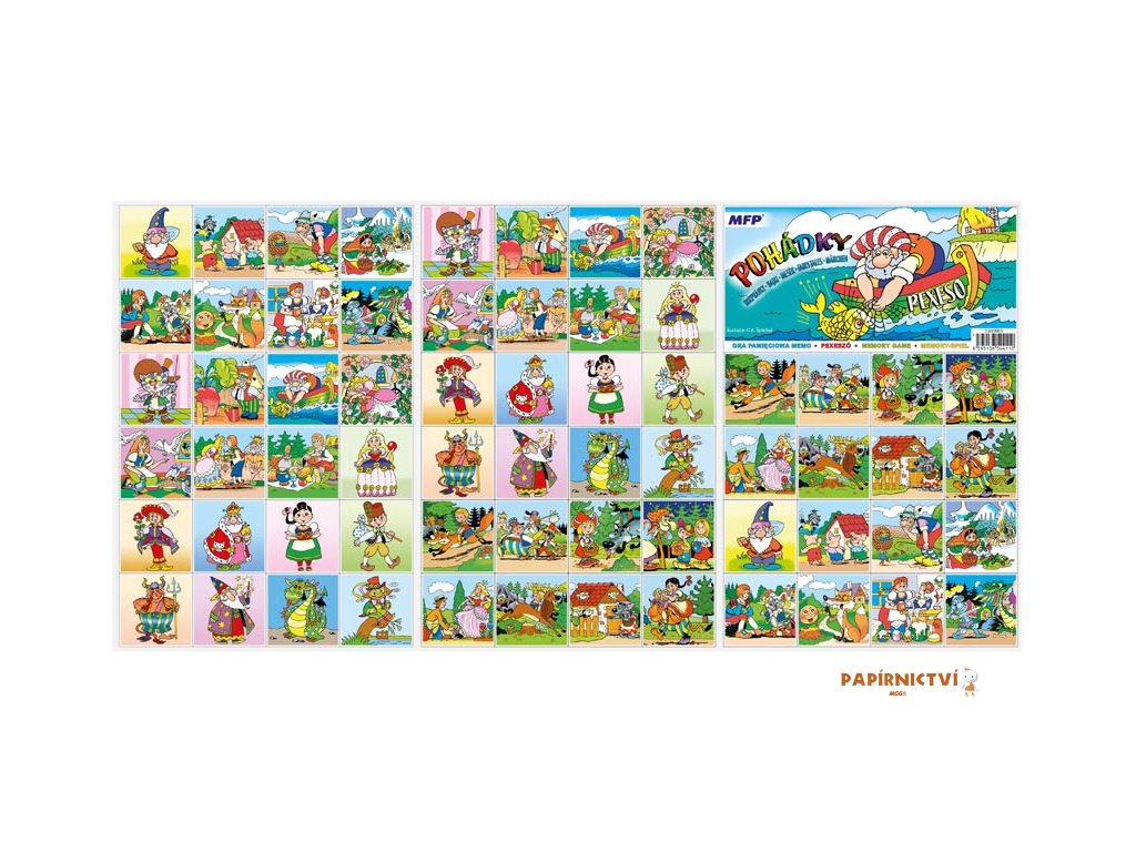 PEXESO je populární dětská stolní hra, která nikdy neomrzí a zapojit se můžou i dospělí. Pexeso - Pohádky - nás zavede zpět k pohádkovým hrdinům z českých pohádek Hrnečku vař!, O šípkové Růžence, Kocour v botách, Čert a Káča a mnoho dalších. Věděli jste, že slovo PEXESO vzniklo souslovím slov PEKELNĚ SE SOUSTŘEĎ? Výborná učební pomůcka pro děti a rodiče. Naučte své děti poznávat zvířata a procvičujte jejich paměť. Tato hra je zabaví na dlouhé hodiny.