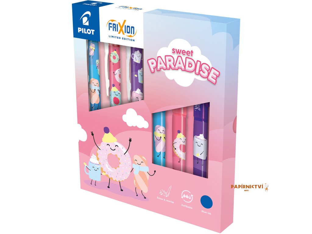 Pilot FriXion Ball Clicker Sweet Paradise Napiš. Vymaž. Přepiš. Oblíbený gumovací roller Pilot FriXion Ball Clicker přichází v limitované edici Sweet Paradise – tentokrát se stiskacím mechanismem pro ještě pohodlnější psaní bez hledání víčka.