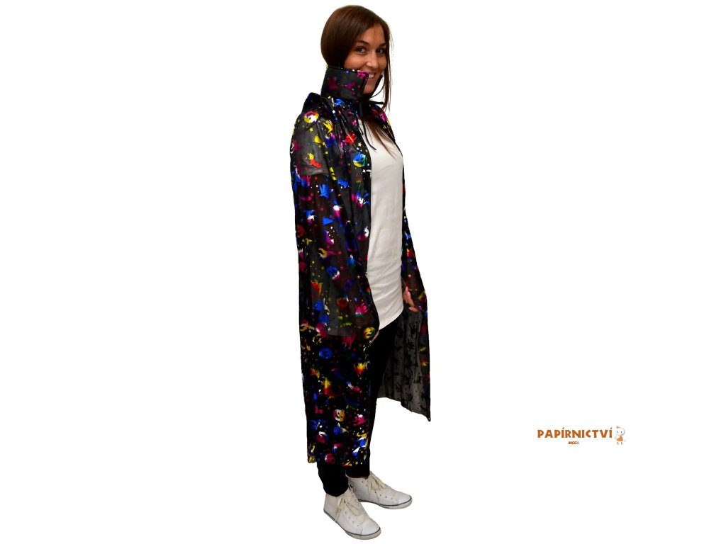 Plášť ideální pro malou čarodějku nebo čaroděje. Je vyroben z lesklého materiálu s potiskem barevných dýní. Plášť má límec a vázání na šňůrku u krku.