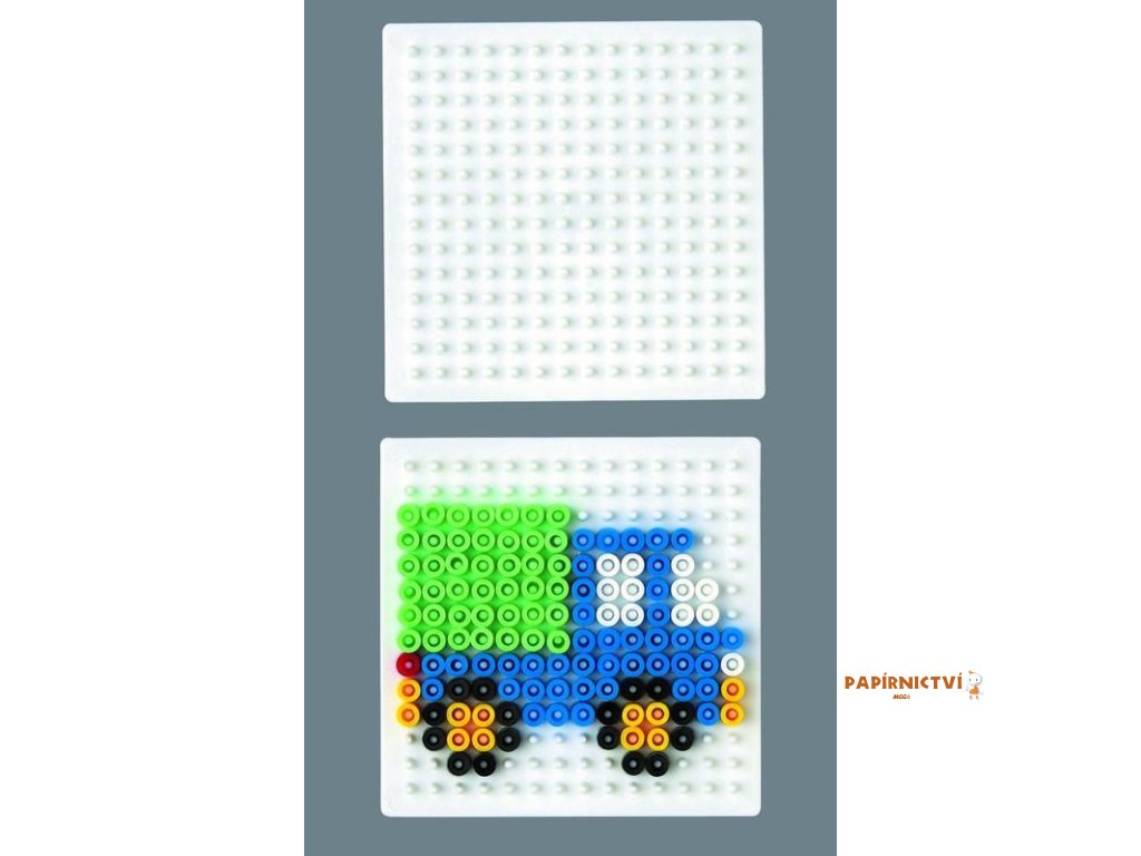 Pod průhlednou podložku je možno vložit obrázek dle vlastní fantazie a dítě může skládat korálky podle barev.