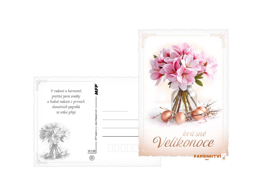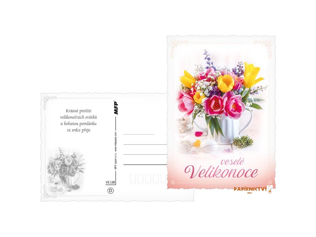Tato pohlednice je skvělým způsobem, jak popřát svým blízkým krásné Velikonoce. Ať už ji pošlete poštou nebo osobně předáte, její nádherné květinové motivy přinesou radost a vykouzlí úsměv na tváři