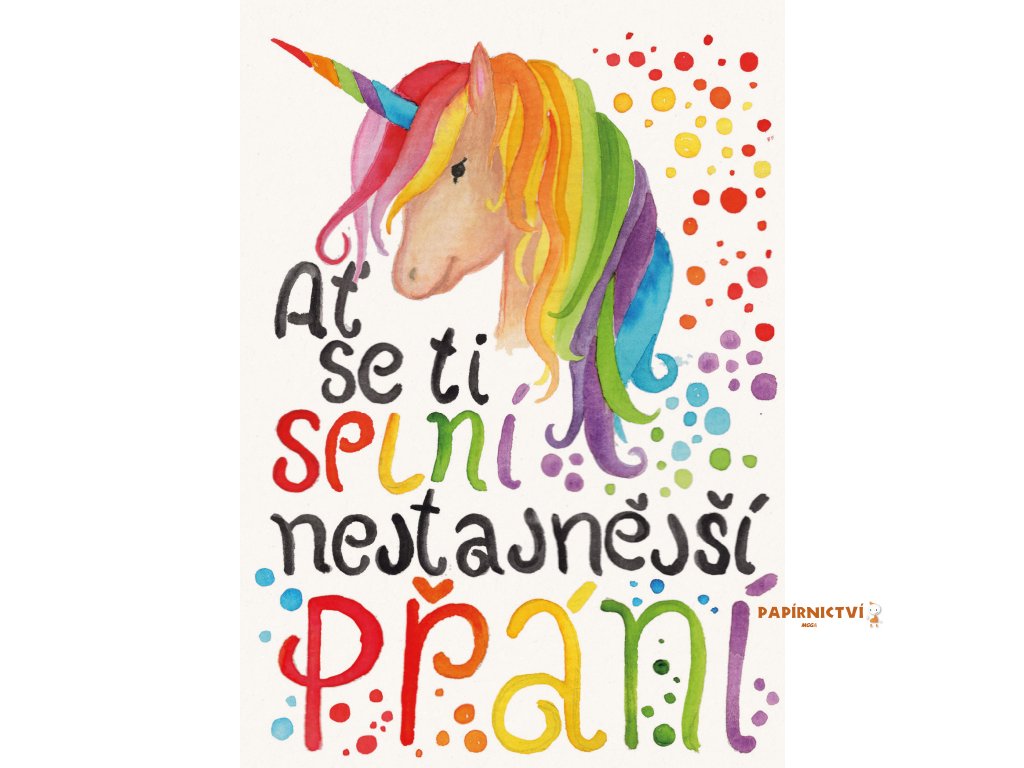 Přáníčko BeBechy - bílé - Jednorožec BPR3-90
