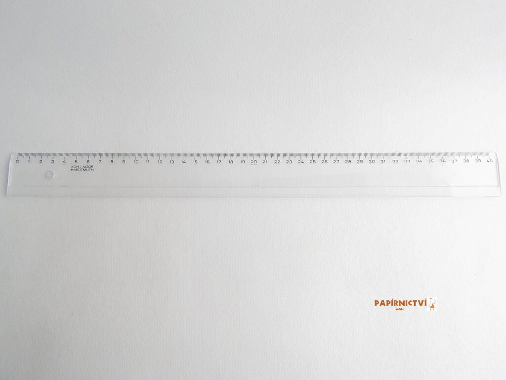 Pravítko 40 cm vyrobené z čirého průhledného polystyrenu. Stupnice je naražena technologií horké ražby. Přesnost stupnice 0,2% délky. Je určeno pro školu i kancelář. Zabaleno je do celotransparentního polyetylenového sáčku opatřeného samolepícím štítkem s identifikačními údaji.