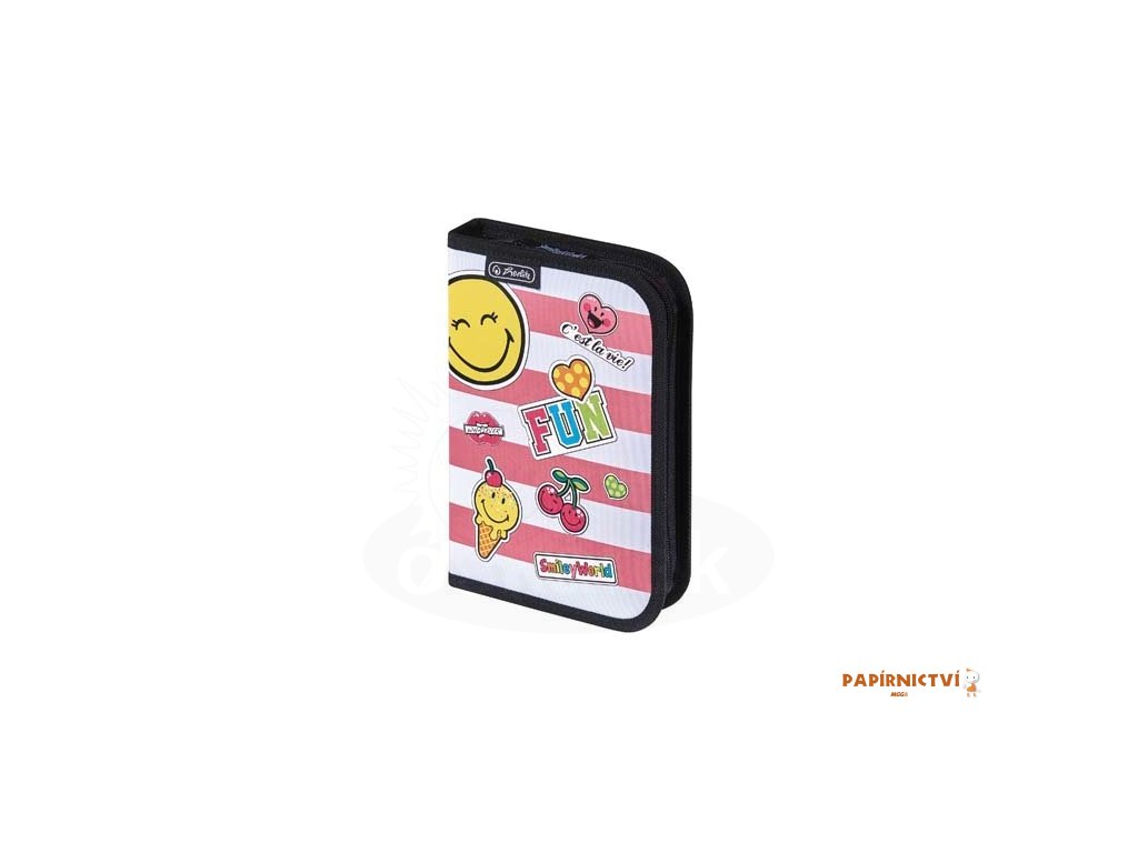 Jednopatrový prázdný penál má 1 chlopeň a obsahuje celkem 28 gumových poutek pro uložení psacích potřeb. Na rubu klopy je průhledná fólie pro založení rozvrhu hodin.