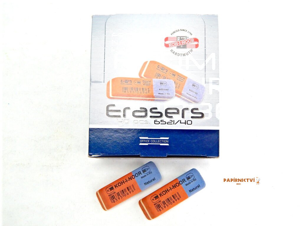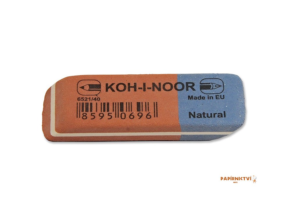 Kancelářská stěrací pryž vyrobená na přírodní bázi bez přídavků plastů a ftalátů. Měkká část (červená) je určena pro stírání grafitových čar středních tvrdostí. Tvrdá část (modrá) je určena pro vymazávání čar i skvrn inkoustu, tuše, písma psacích strojů a snímacích tuh.