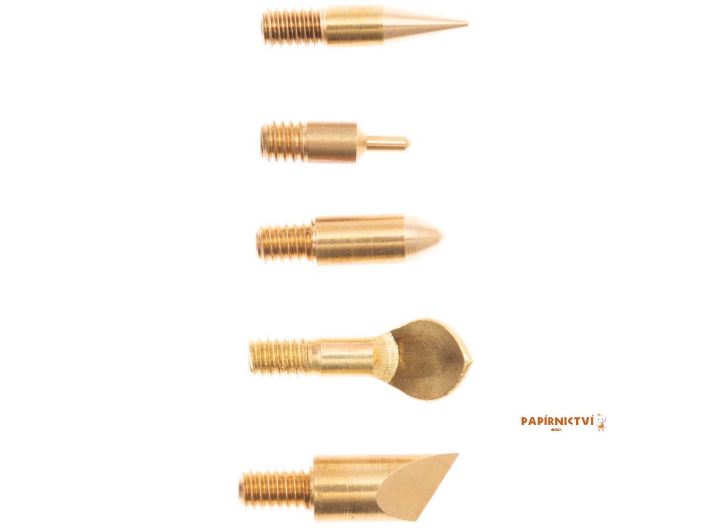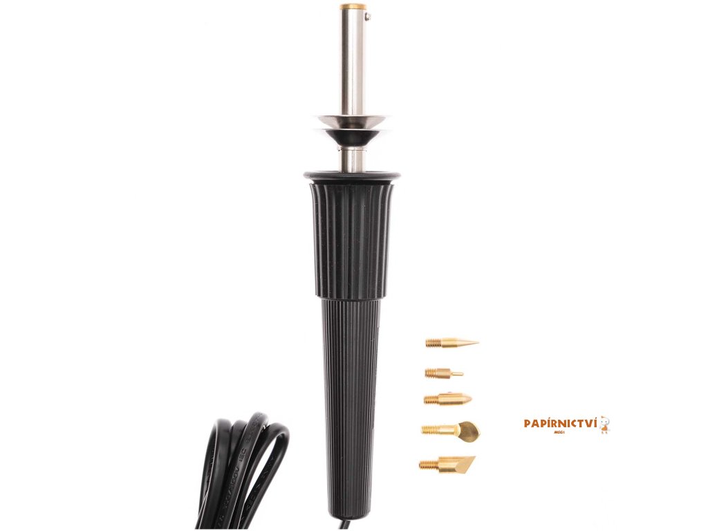 Vypalovací pero pro kreativní tvorbu s dřevem,. kůží, korkem a dalšími materiály. 5 vypalovacích nástavců s různou šířkou. Kovový stojánek na odložení pera, měkký úchop pera. Přípojný kabel 1,4 m.