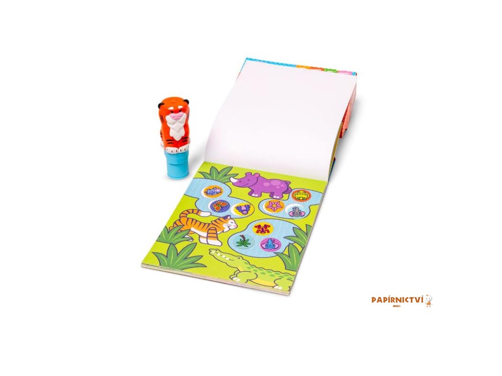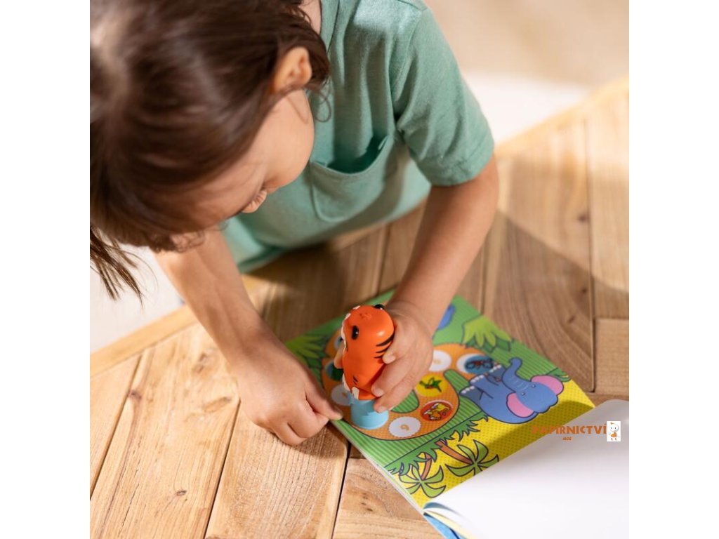 Razítkovač se samolepkami Sticker WOW!™ od Melissa & Doug je zcela nový způsob, jak si hrát se samolepkami! Nechte rozkošného sběratelského tygra razítkovat a razítkovat, razit si cestu přes 24 stránek plných zábavy se safari tématikou počítání, přiřazování a hledání.