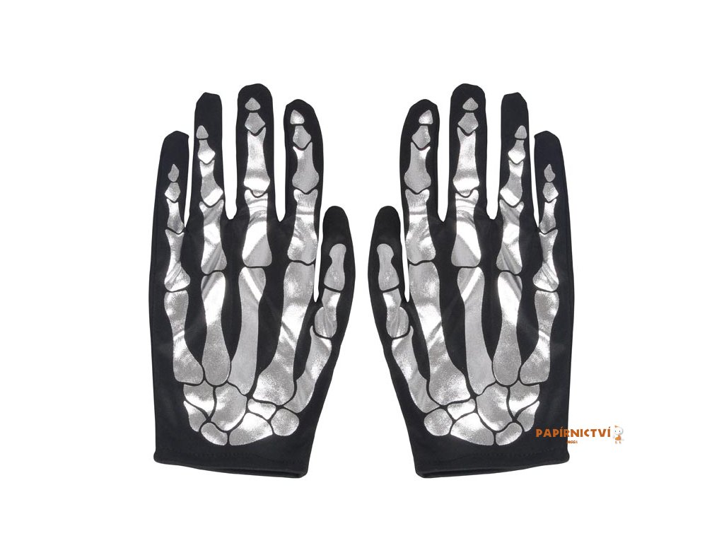 Černé rukavice s výrazným stříbrným potiskem kostry jsou ideální pro každého, kdo chce na Halloween či karnevalu zaujmout. Lesklé kosti kontrastují s tmavým podkladem, takže i jednoduchý kostým získá jedinečný vzhled.